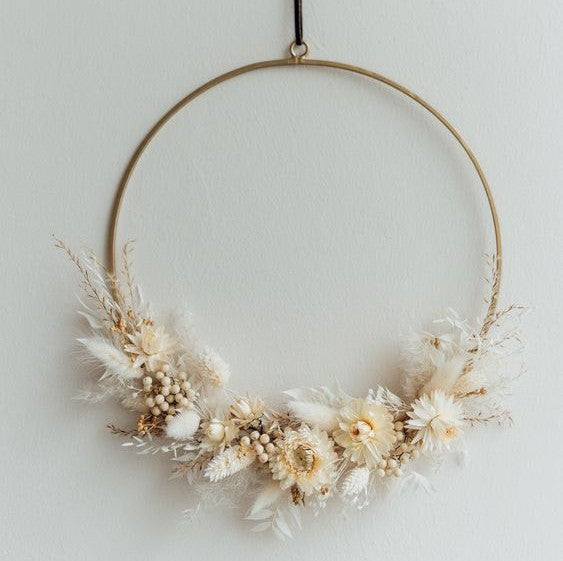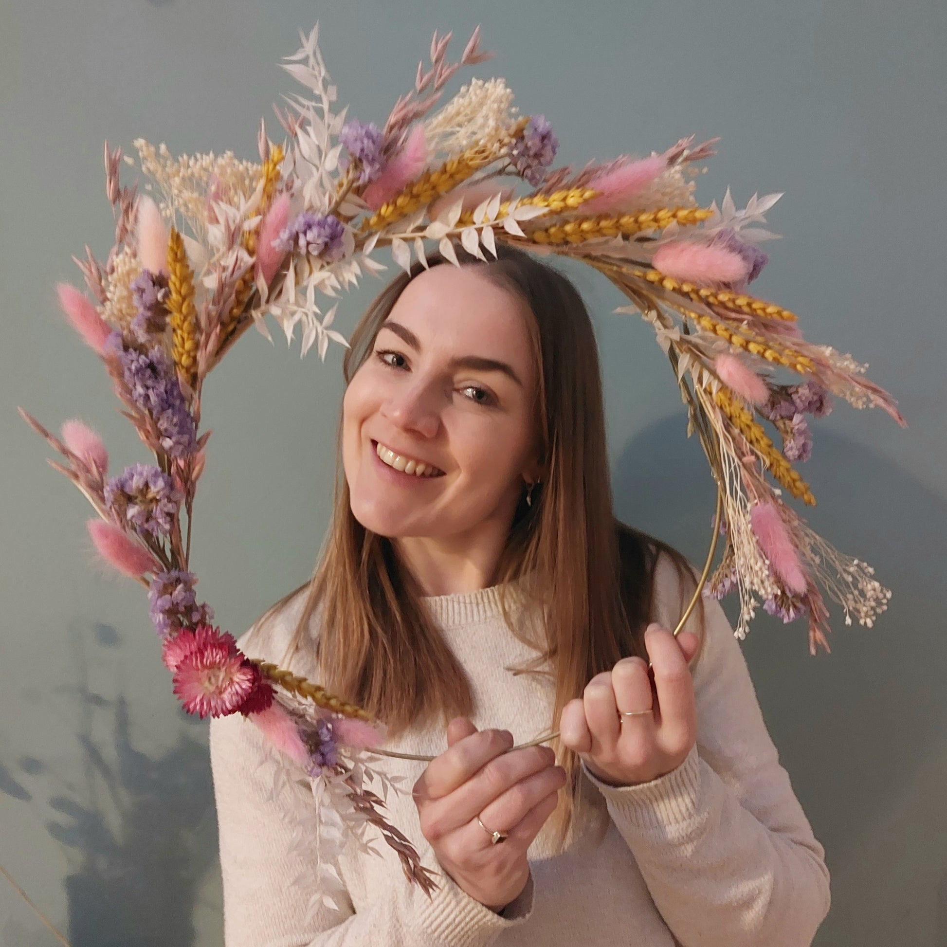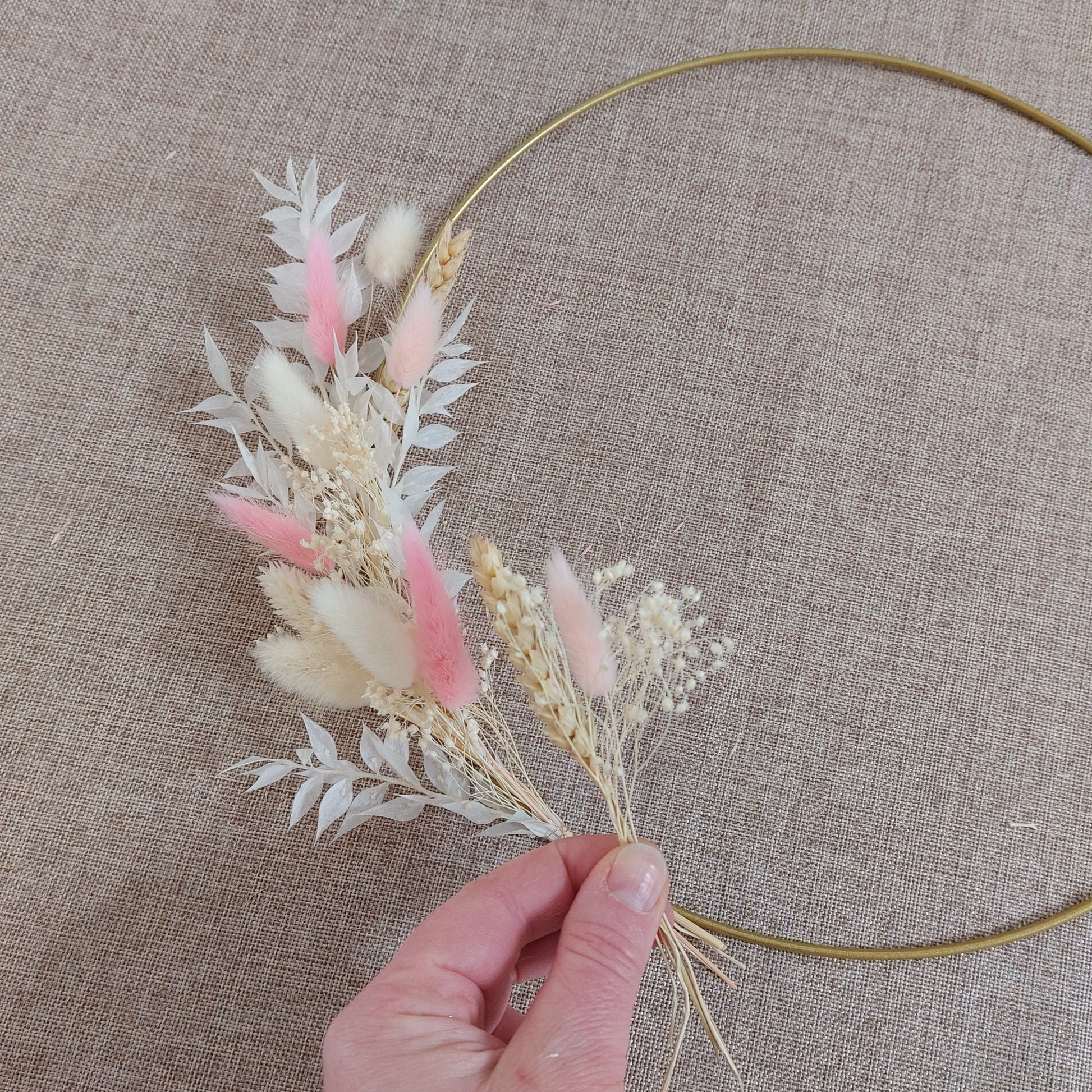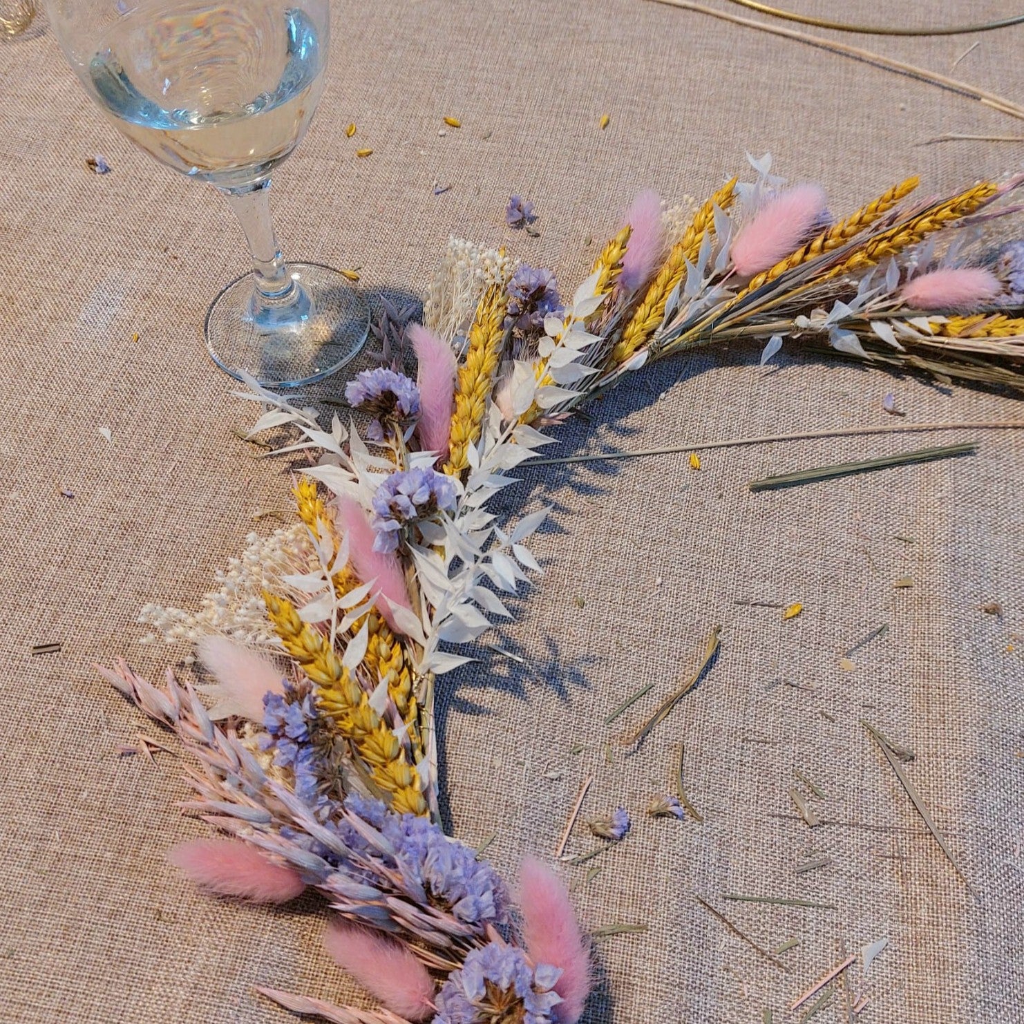 Gestalte deinen eigenen Flower-Loop mit Trockenblumen: Nach einem leckeren Willkommensgetränk lernt ihr, welche Techniken und Tricks Ihr zum Binden von Trockenblumen benötigt – mit viel Spaß und einem tollen, individuellem Ergebnis